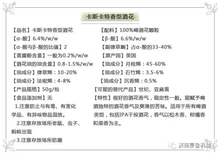 下面是該啤酒花的技術(shù)參數(shù),專供精釀啤酒設(shè)備使用